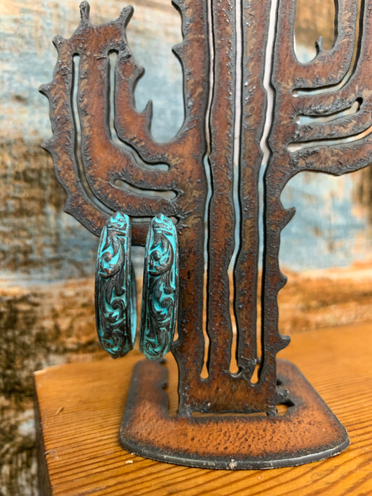 Turquoise Patina Tooled Hoop Earrings