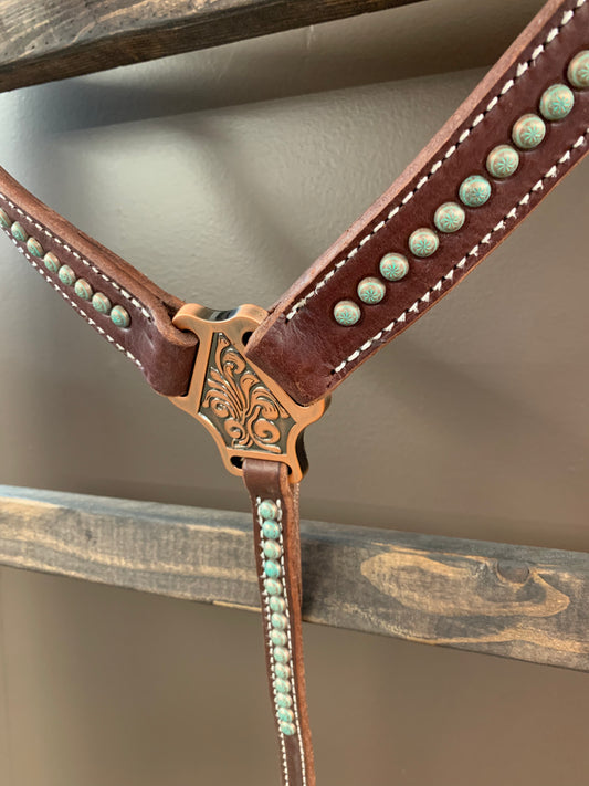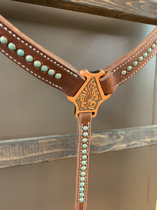 CPT Heavy Oil Breast Collar With Turquoise Patina Dots
