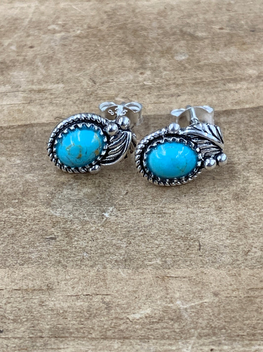 Silver Rope Edge Turquoise Pendant Necklace 20” .925