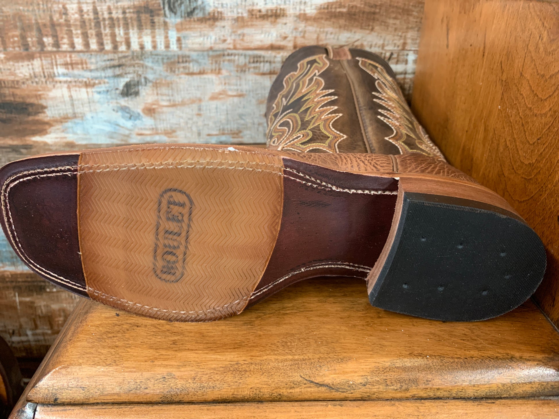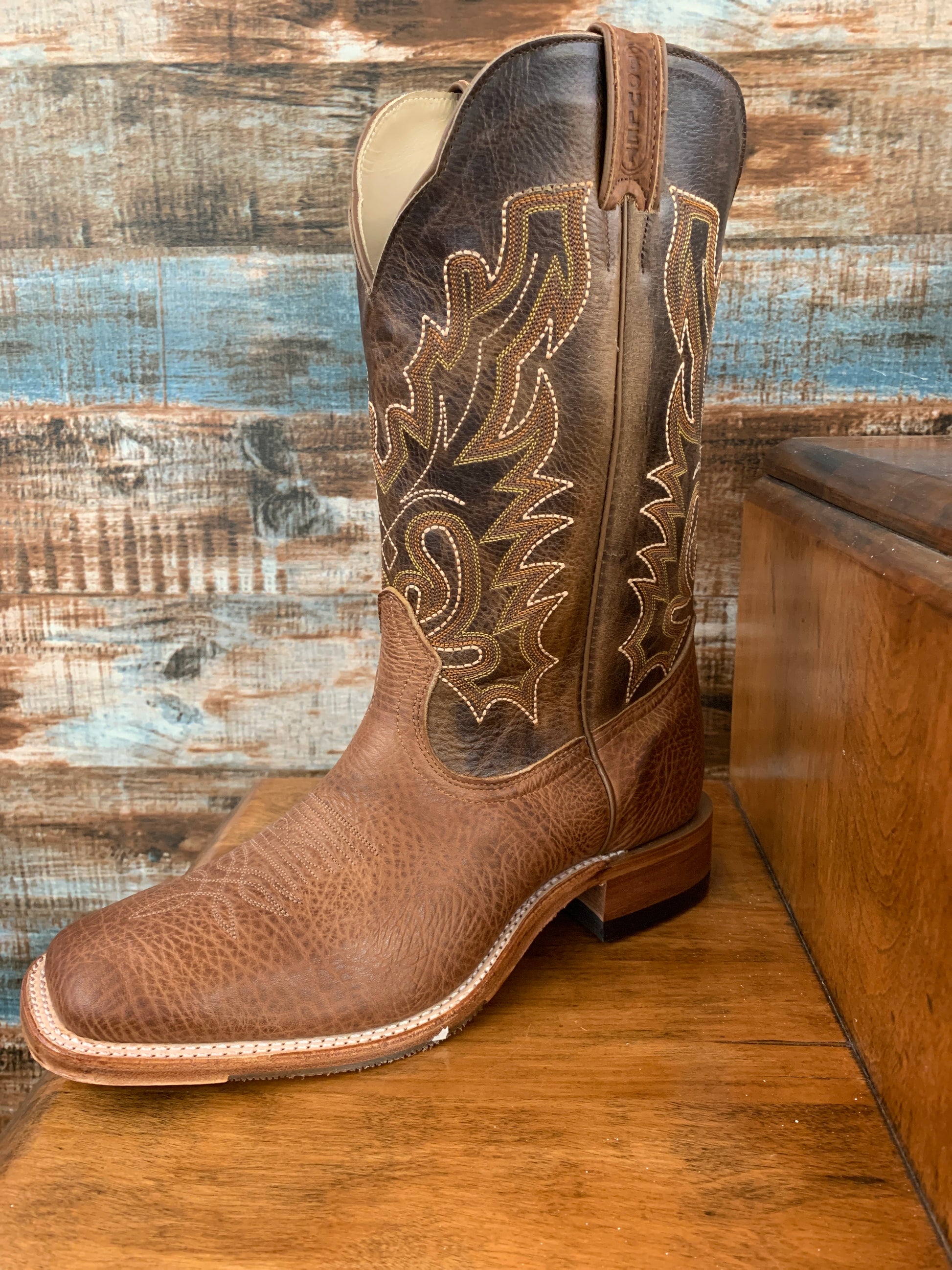 13” Wide square toe. Stockman heel. Injected leather sole. Removable cushion insole.