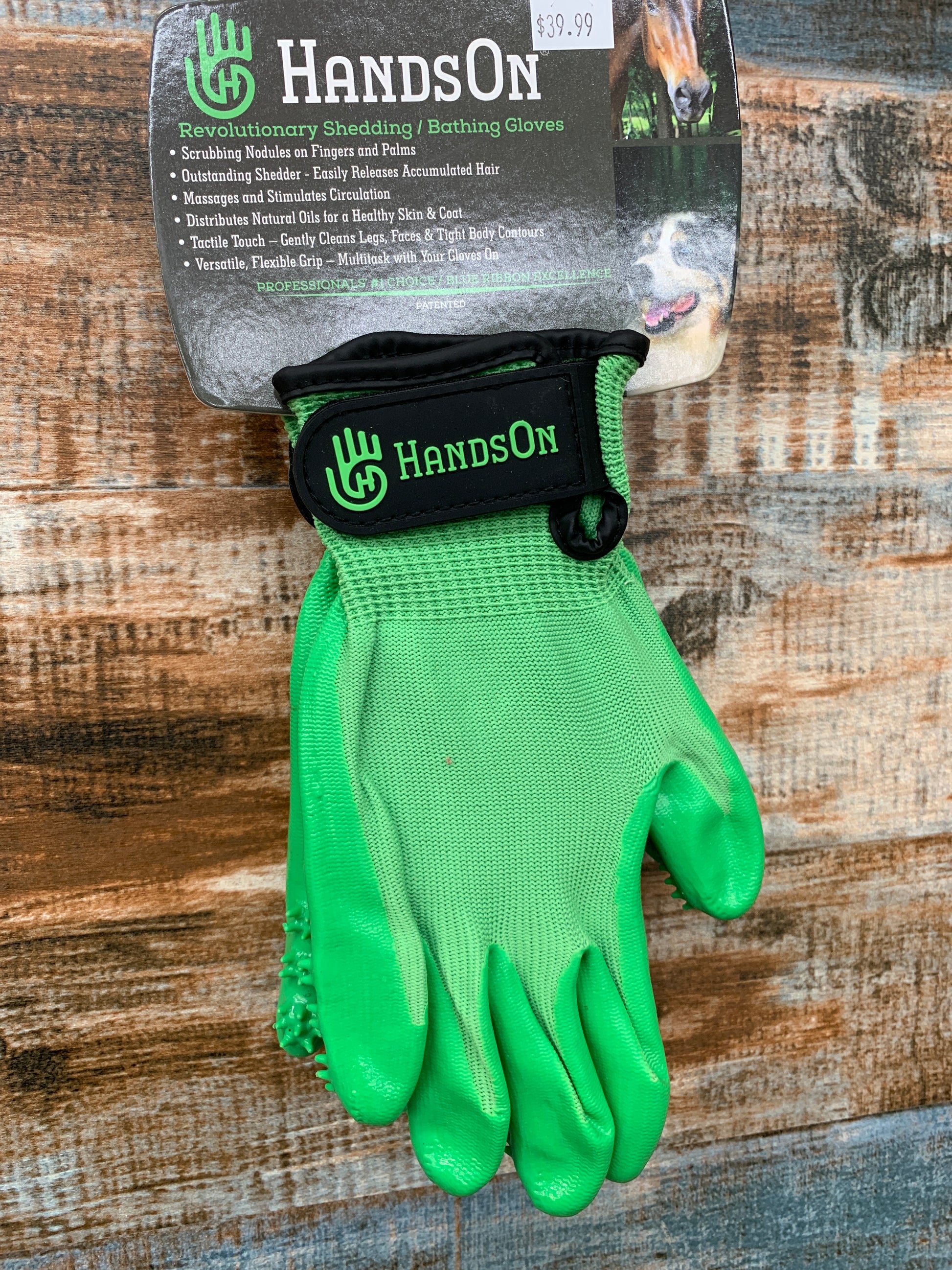 HandsOn Animal Gloves are a revolutionary concept that reaches far beyond the traditional curry combs, mitts and shedders on the market today. Wet or dry, they won’t slip or fall off while providing you and your animals with a more thorough and enjoyable bathing and grooming experience.