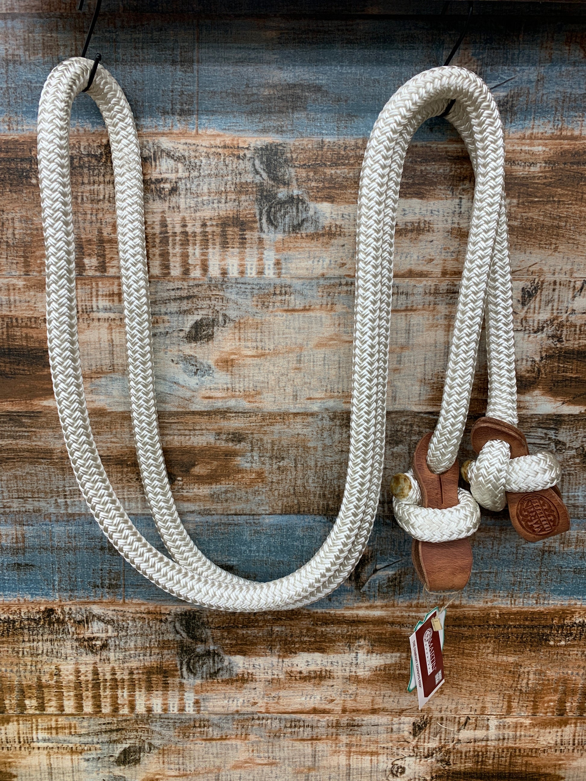 Rein your colt without the excess bulk of a long rein. Yacht rope has 3/4” diameter and shorter straps. Harness leather slobber straps