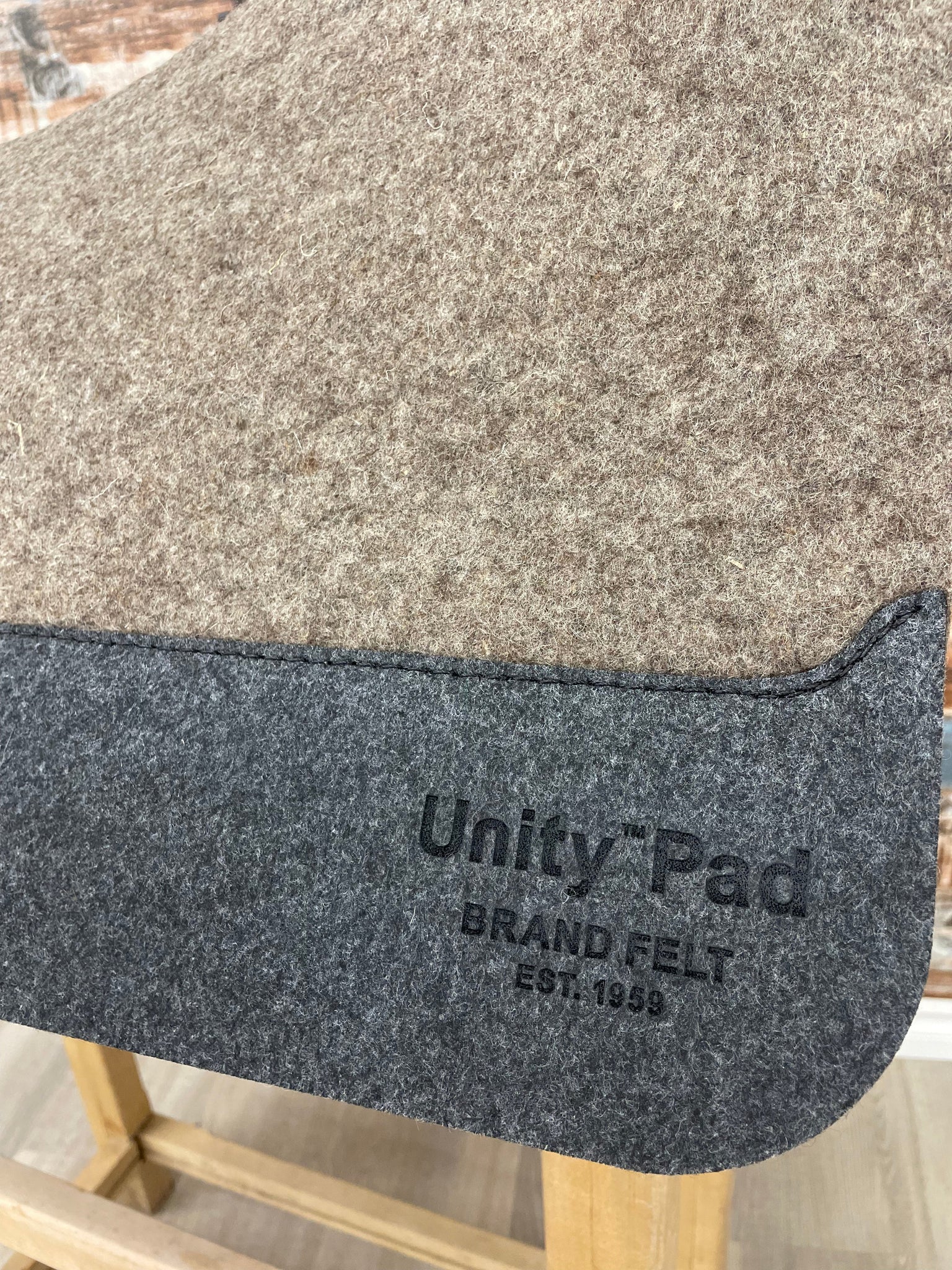 Canadian made felt pad by The Brand Felt Ltd. 100% wool felt pad. All with leg cutouts for close contact. Roper Size 30x32”